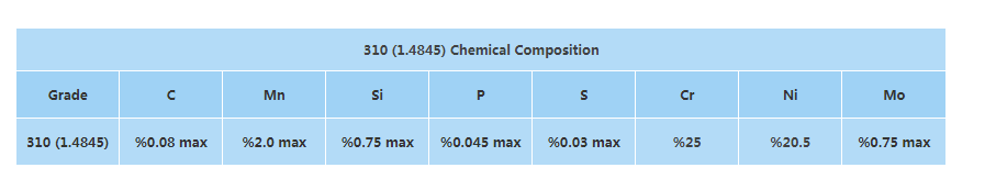 1.4845不銹鋼牌號,也稱為1.4845或310s,是一種常用于高溫環(huán)境的不銹鋼牌號。該牌號根據(jù)EN規(guī)范寫為1.4845或X8CrNi25-21,根據(jù)UNS規(guī)范寫為UNS S31008。310材料理論上可以承受高達1100C的溫度。310 (1.4845) 不銹鋼牌號含有非常高比例的鎳和鉻,這些元素使該牌號非常耐腐蝕。310 不銹鋼可以在非常高的溫度下工作,這是在高溫應(yīng)用中使用的最常見的耐熱不銹鋼等級之一。如果 310 材料的碳含量低于 %0.08,那么這個版本也被稱為 310 S 和 310s 不銹鋼可以承受比標準的 310 不銹鋼等級高一點。