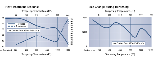 為了最大限度地減小橫截面內(nèi)部應(yīng)力大于6英寸(152.4 mm)并提高熱處理后EDM的工具的穩(wěn)定性,強(qiáng)烈建議在回火溫度下浸泡4到6小時(shí)。